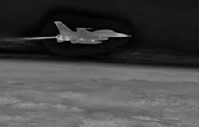 比如下图就是一张战机被EOTS锁定的照片,我们能看出这架战机的尾焰相当明显。